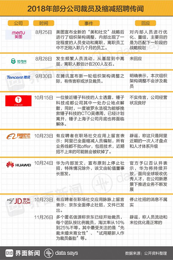 近日,京东再次爆出“裁员”消息,其中最受关注的是“先裁未婚未育女性”、“试用期新人作为裁员备胎”等。11月27日,京东发表声明辟谣,称这是正常的人员流动和末位优化。2018年以来BATJ等互联网公司裁员和停止社会招聘等传闻没有断过。