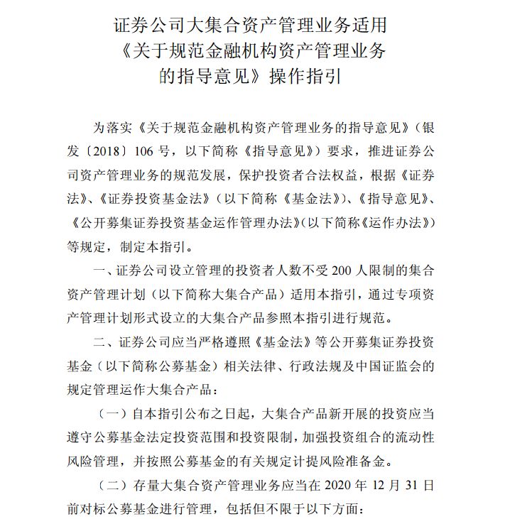 附上:证券公司大集合资产管理业务适用 《关于规范金融机构资产管理业务 的指导意见》操作指引
