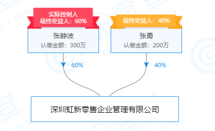 拼少少的主体公司——深圳虹新零售企业管理有限公司,由两位股东共同出资500万元人民币。公司的总经理张静波出资300万,占比60%。而传说中的张勇仅是第二大股东兼公司的监事一职。