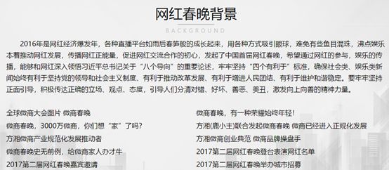 公开信息只能看到这家成立不到两年的沸点娱乐主要的经营活动就是举办过两届网红春晚。而所谓的网红春晚就是微商界的春晚。