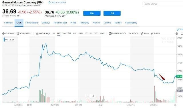 无奈特朗普不买账,几条推特发出来,导致通用汽车股价下跌了2.55%。