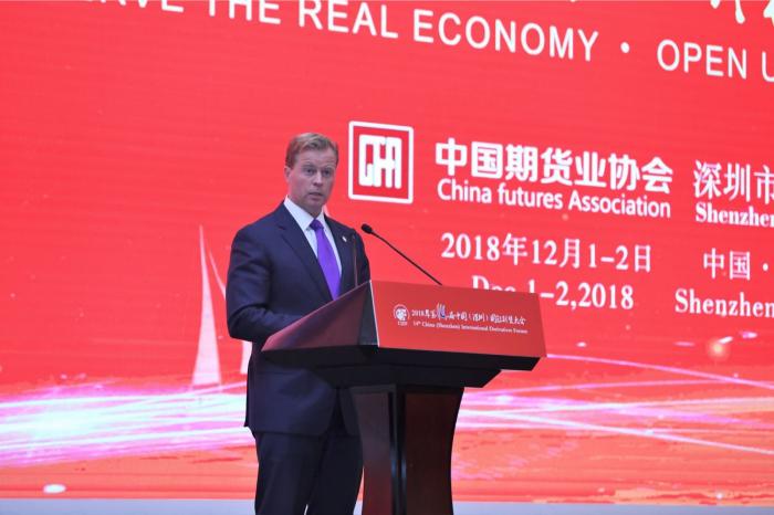 “中国期货市场的快速发展,我相信确实也是中国经济增长的一个重要的关键动力,当然也给包括在全球这个市场当中不断地注入新的活力。作为世界上最大的商品消费国和最大的生产国,我认为中国的公司必须有效和方便地将它的商品价格风险进行对冲。” Brian D.Quintenz说道。