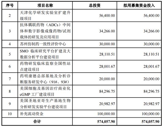 (3)2亿元用于药明康德总部基地及分析诊断服务研发中心;