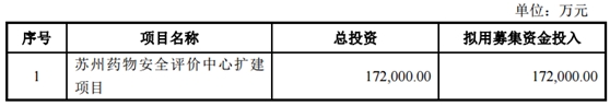 (1)7.27亿元用于苏州药物安全评价中心扩建项目;