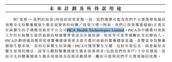 在最新的H股招股说明书中,药明康德特别提及了一家名为PICA Health Technologies Limited的社区医生的手机应用教育平台公司。