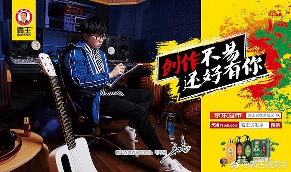 毛不易替代成龙,成为了霸王的新代言人。图片来源:新浪微博