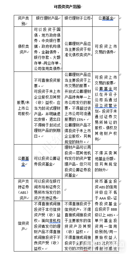 银行理财子公司发行的理财产品投资范围,较银行理财产品有松有紧。