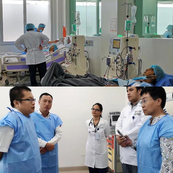 在肾脏科主任Aldnn及血液透析科主任katiuska的带领下,我们参观了前一天刚刚开始运行的血液透析科,有5名患者正在做透析治疗。肾脏科主任Aldnn介绍说,以前马纳维省的公立医院没有血液透析设备,他们只能把需要透析的患者介绍到私立医院,费用由卫生部或社保基金承担。在私立医院做一次透析的费用在120美元左右。2008年厄瓜多尔实行全民免费医疗之前,很多需要透析的患者因为付不起钱,只能慢慢等死。