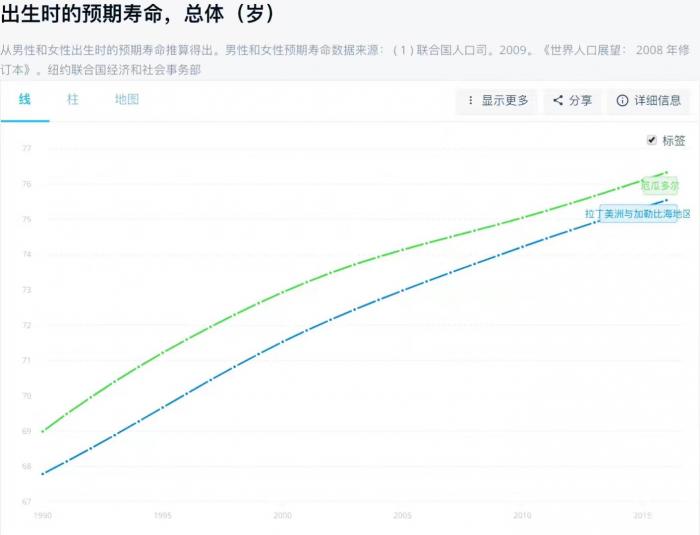 因为实行了全民免费医疗,2007-2016年间,厄瓜多尔人均预期寿命从74.501岁增加至76.327岁,十年间人均预期寿命增加了1.826岁;与此同时,总人口从1420.5万人增加至1638.5万人,意味着总健康财富从105828.7万人岁增加至125061.8万人岁,净增加19233万人岁,充分显示了健康革命和投资的健康财富效应,这是在经济财富指标之外国家健康总财富增加的指标,区别于GDP的经济财富效应。与此同时,厄瓜多尔2017年人均预期寿命76.6岁,高于同期拉丁美洲人均预期寿命75.54岁。这样的成果让人想起科雷亚曾经说过的一句话:“国家的作用至关重要,要通过政府提供公共产品,改善国家的竞争力,要把资源分配到社会上最有价值的地方。”