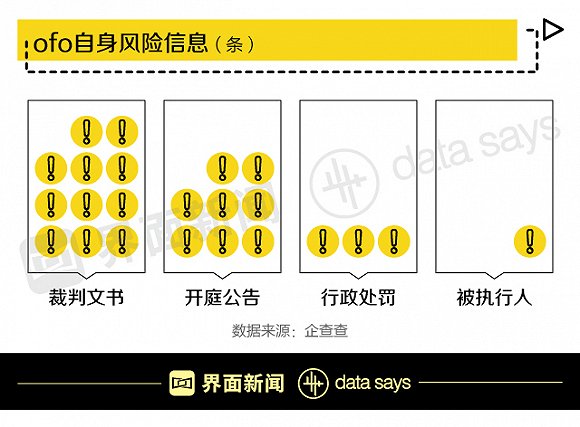 企查查数据显示,截至发稿,ofo自身风险数已升至23条。