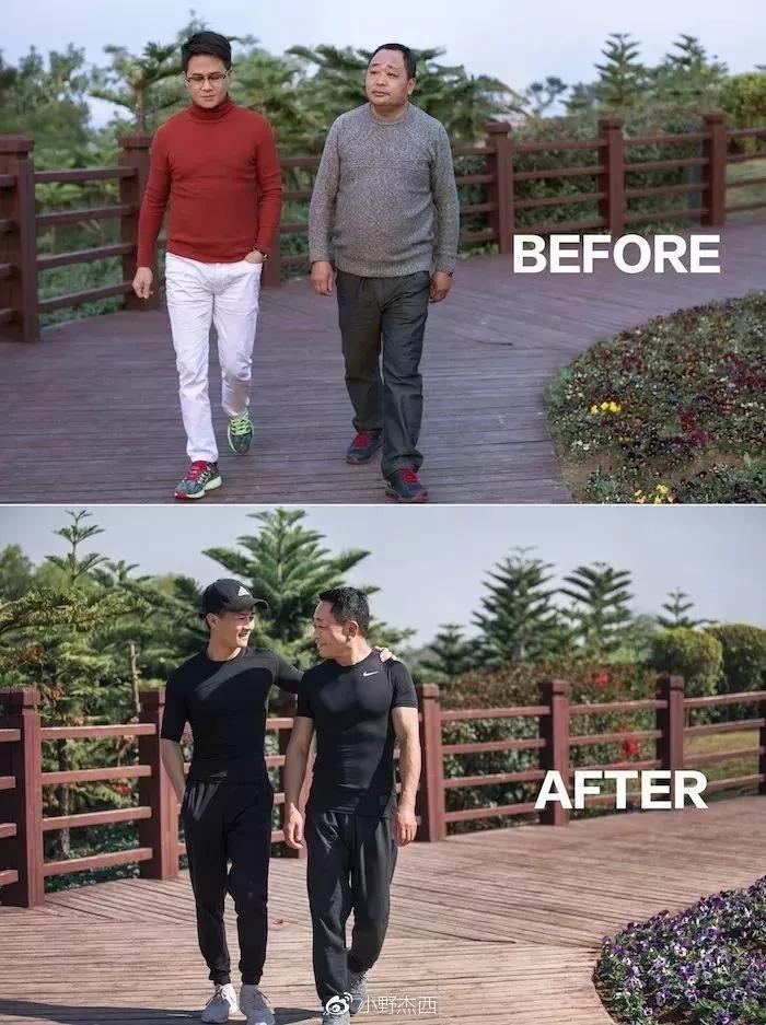 摄影师小野杰西曾记录过陪父亲减肥的全过程,父子两人都一下子年轻了好几岁。