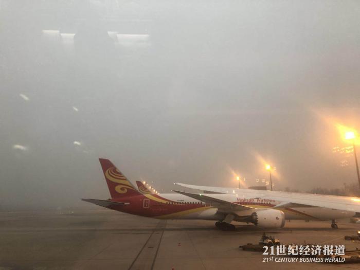 图为12月2日下午5点的首都机场,本报记者周慧摄