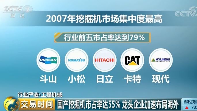 太平洋证券机械行业首席分析师 刘国清:这个行业相对国产化还是比较好的。以挖机为例,基本上国产化比例应该达到55%,而且国内做挖机比较好的也是四大企业,三一徐工柳工和临工,而且市占率国产化还在往上提升。