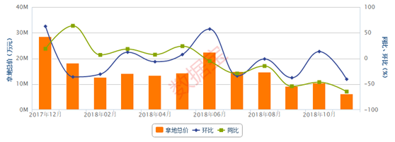 整体来看,房企11月只有拿68块地,金额为626亿元,创出年内新低,同比下降超过64%,环比下降接近40%。