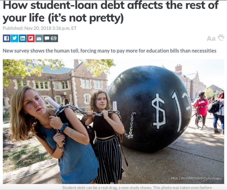 近日,一个名为“学生债务危机”的非营利组织就发布报告称,沉重的学生贷款使得美国年轻人面临严重的“生存危机”,就更谈不上自我提升和发展了。
