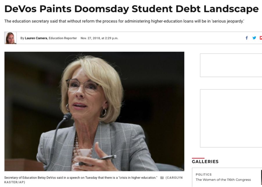 “我来这里是为了向美国学生和美国纳税人发出警告,”当地时间上周二下午,德沃斯对5000多名金融人士表示,“我们的高等教育面临危机。我们的高等教育系统虽然令全世界羡慕,但如果我们不对分配、管理联邦学生贷款的方式进行重大的政策改革,那么这么多学生所依赖的项目将面临严重的危险。”