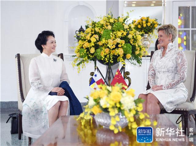 彭丽媛会见巴拿马总统夫人卡斯蒂略并共同出席艾滋病防治公共宣传活动