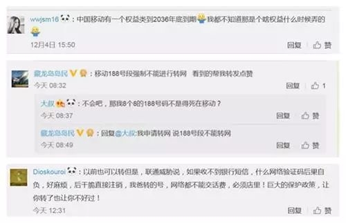 微博用户@Dioskouroi称,“原来办理携号转网,被工作人员威胁,如果收不到银行短信、网络验证码后果自负。”