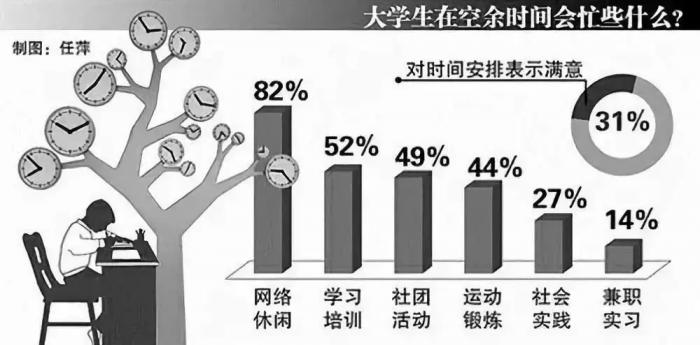 有82%的大学生,将空余时间奉献给了网络休闲。