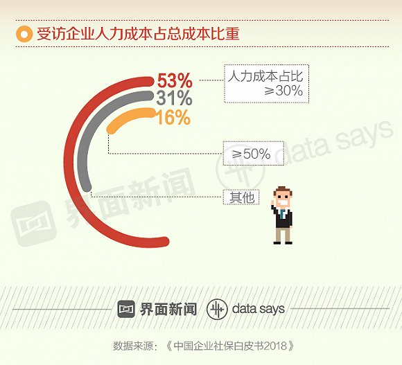 《中国企业社保白皮书2018》显示,超过一半的企业的人力成本占比在30%以上,16%的企业人力成本占比在50%以上。