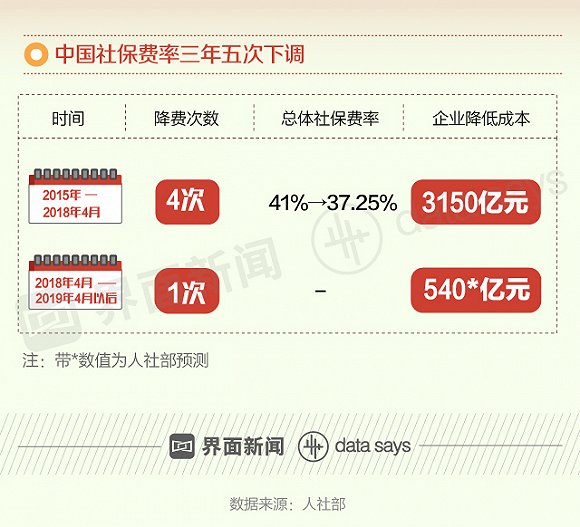 2015年至今,人社部已经五次下调社保费率。2018年11月2日,国务院常务会议公布社保降费率新政,原定实施至明年的现有政策(用人单位和职工失业保险缴费比例总和从3%阶段性降至1%)将在明年4月底到期后继续延期实施。