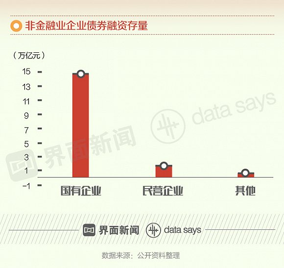 债券融资方面,在非金融企业信用债存量中,有近15万亿都来自国企,民企不足2万亿。