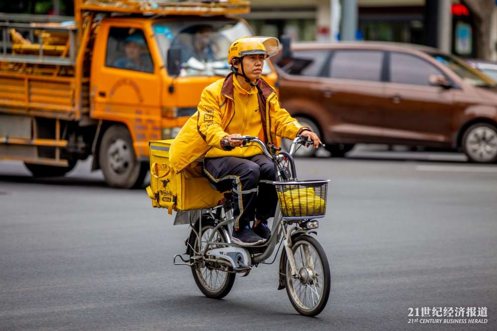 外卖员都换上冬装应对寒流。