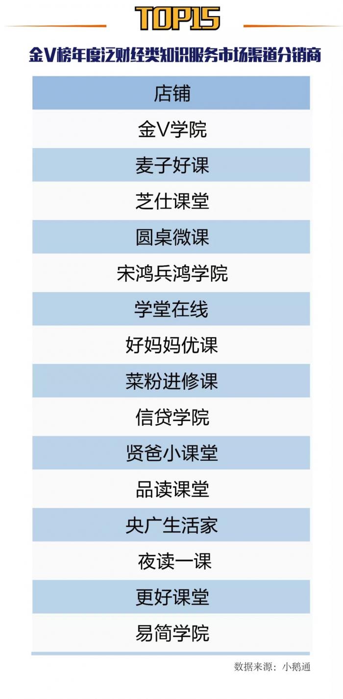 金V榜年度泛财经类知识服务市场渠道分销商TOP15: