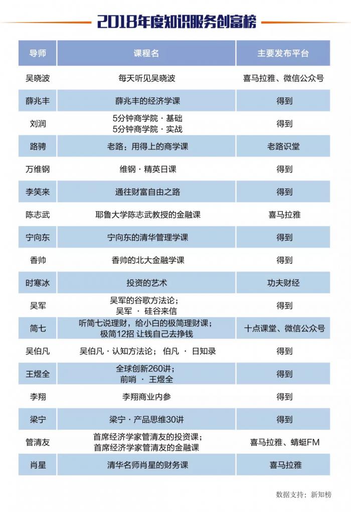 与此同时,为吸引更多知识付费从业者进入,榜单还评选出了2018年度知识服务创富榜。