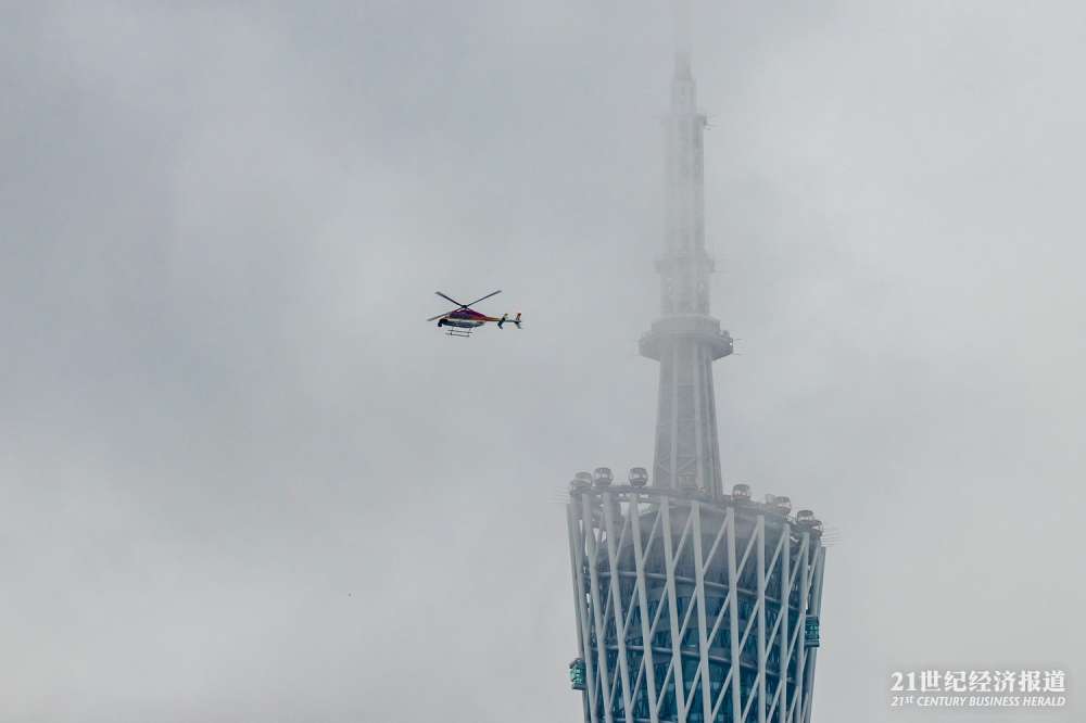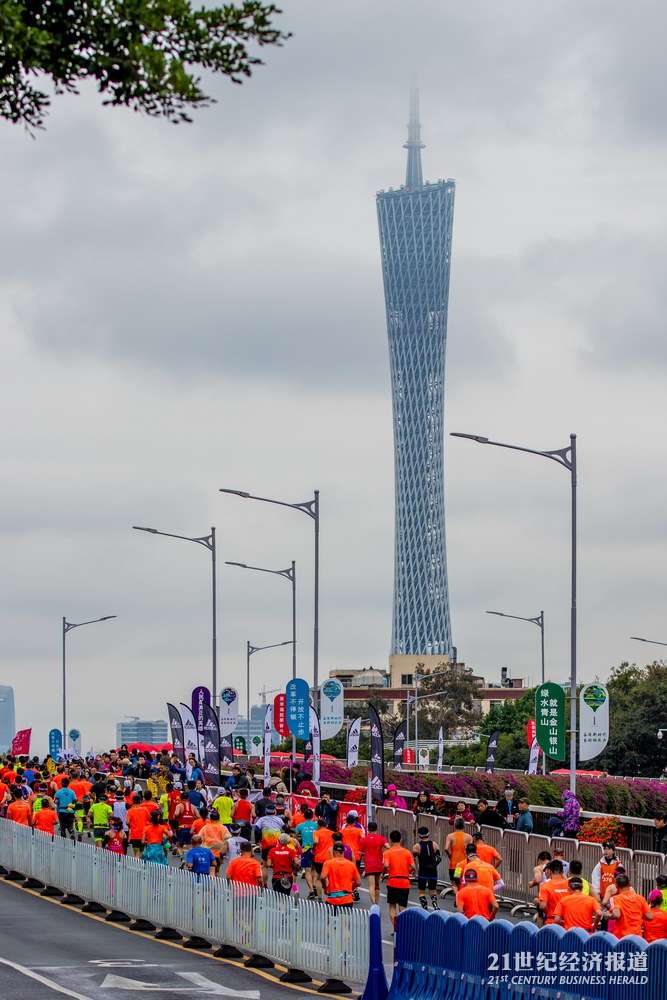 赛事进行到中后段时雨势终于停了,海印桥附近也能清晰地看见广州塔。