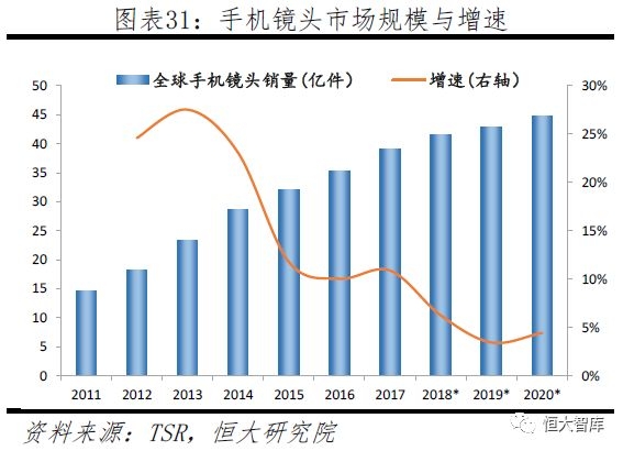 早期大陆厂商主要集中在中低端镜头市场,但在大陆终端品牌对双摄和高像素等需求的带动下,大陆厂商技术进步加快、产业正逐渐向大陆转移。目前可以生产1000万以上像素的仅台湾大立光、日本关东辰美、Sekonix、韩国三星和中国大陆舜宇光学。舜宇光学近年来增长较快,市占率由2014年4.2%提升至2017年17%,排名由第7升至第2。