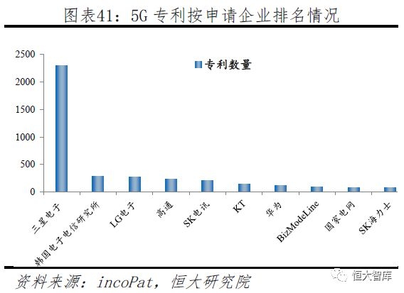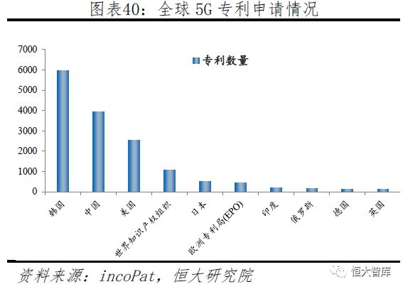 从5G专利申请数量来看,专利数前三国家依次为韩国、中国和美国,且三国专利申请量占全球总量的81%。