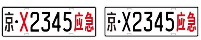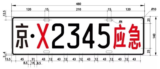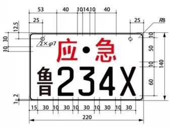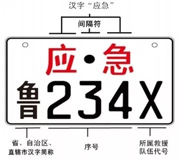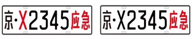 专用号牌为白底黑字,配以红色汉字“应急”。