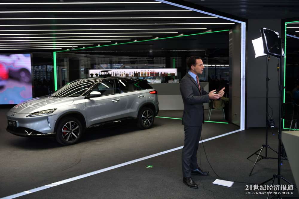 13日,彭博社在小鹏汽车广州总部采访报道。