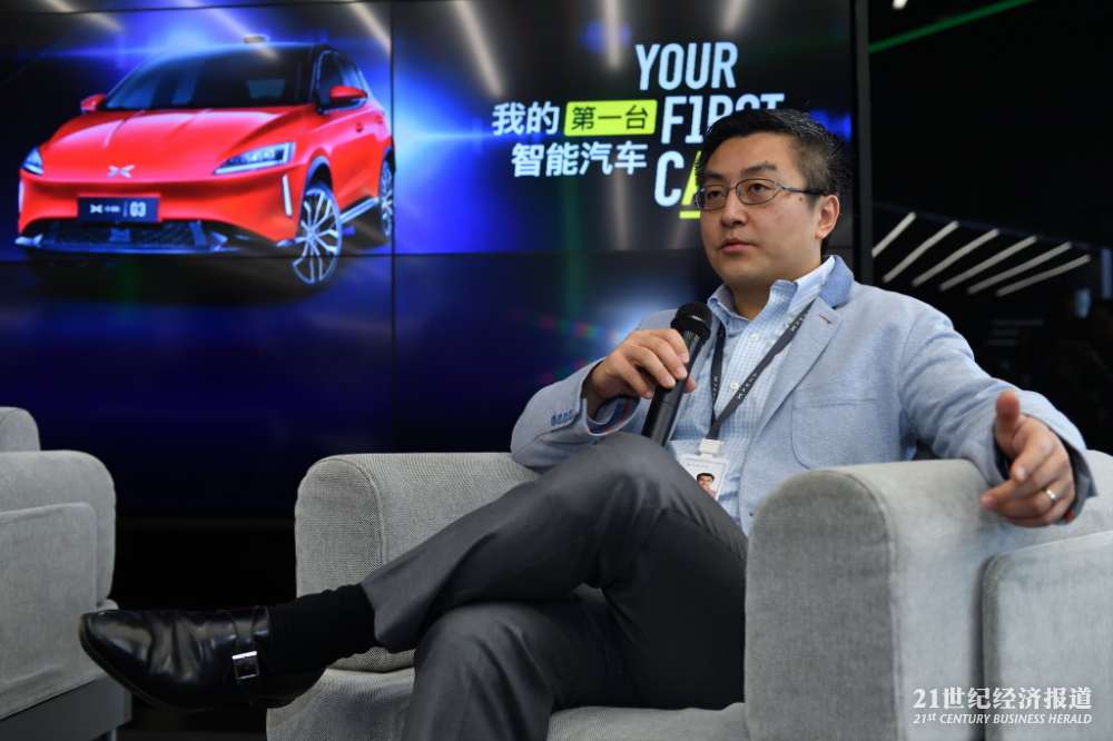 小鹏汽车董事长兼CEO何小鹏、小鹏汽车副董事长兼总裁顾宏地13日上午在广州总部接受媒体采访。