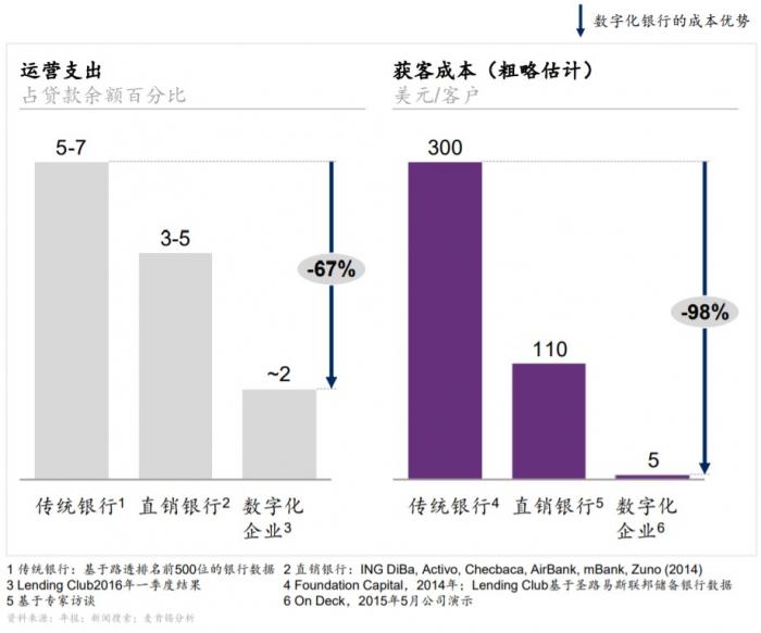 但如何向数字化原生企业的业务敏捷与科技创新能力所看齐? 则需要向更深层次的《数字化2.0》迈进(业务组件、开发敏捷、数据智能),形成 “共享化能力中心” 作为敏捷发动机。如下图的公开数据分析可以看出,完成了共享敏捷化转型的数字化企业(数字化2.0)要相比直销银行(数字化1.0,以移动化为核心)和传统银行,无论是获客成本、还是敏捷带来的运营成本,都有着更加显著的竞争优势。是时候要考虑将数字化进程推进到“深水区”,通过强大的“共享化能力中心”来建立敏捷化细分市场的覆盖能力,缩小“数字鸿沟”。