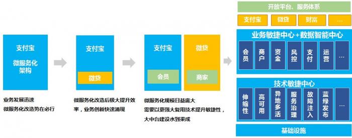在总结分析蚂蚁自身技术锤炼的过程中,我们发现“敏捷能力”无处不在。敏捷的技术能力支撑着蚂蚁自身的普惠金融业务能够快速迭代。同样,我们看到中国银行业在面向轻型银行、交易银行、数据银行、Open Bank等新形态演变的过程当中,业务组件化的能力。