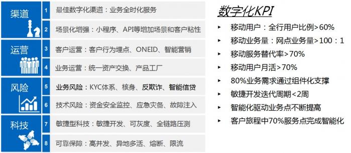 数字化方法论:数字化成熟度评估、EdgE(End-to-End Digital)客户数字化旅程分析、数字化风险评估、建立匹配数字化转型的数字化KPI……