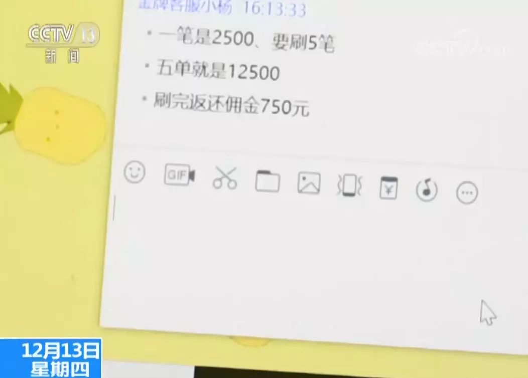 随后,刘女士又按照对方的要求,通过网络平台购买了12500元的商品。对方承诺,刷完12500元的商品,返还佣金750元。