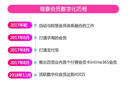 首先是数字化会员。银泰的数字化会员基于淘宝账号而生,同时银泰数据与阿里数据完全融合,这意味着银泰会员所有消费行为均是线上线下融通。相较于大部分传统商业百货体仅开设自有线上平台的做法而言,银泰此举大大丰富了会员行为数据,也为银泰后期进行会员运营奠定了基础。