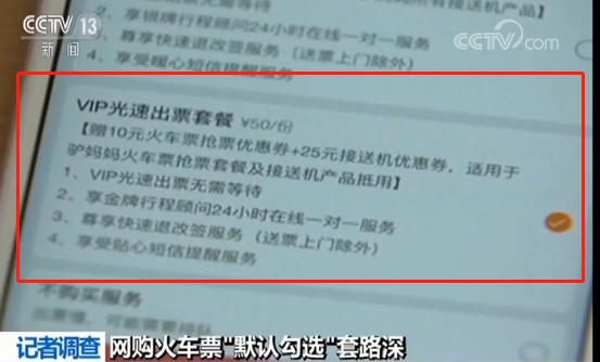 调查丨买车票竟悄悄多出70元 网购火车票“默认勾选”套路深