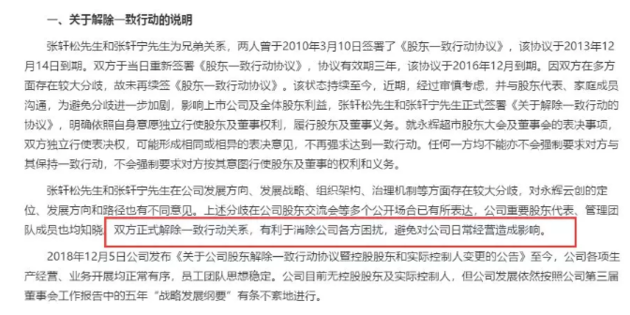日前,张氏兄弟解除一致行动关系,另类“分家”。