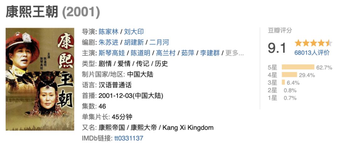 《康熙王朝》在这17年里,不停地复播于各大卫视,循环往复,年年如此。正所谓是经典作品总能经得起时间检验,而长大后再看这些老剧,也会对内容有新的理解。