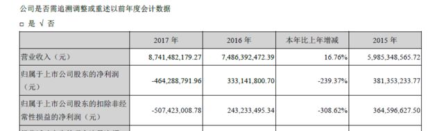 2017年,电广传媒出现近10年来的首次亏损,2017年全年实现营业收入87.41亿元,同比增长16.76%,归属于上市公司股东的净利润为亏损4.64亿元,同比下降239.37%。