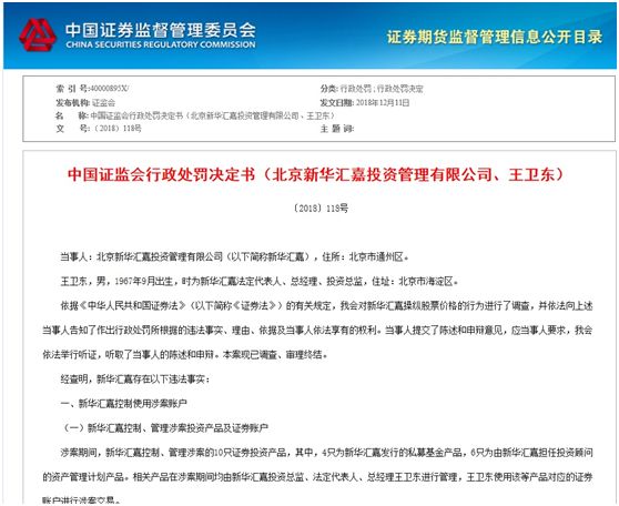 2015年,王卫东“奔私”成立北京新华汇嘉投资。如今,证监会一纸罚书“落地”,王卫东及其私募被罚近500万!