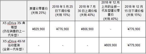 根据相关政府部门公告内容,暂停加征关税的有效期将延续到2019年3月31日。附录:BMW X5厂家建议零售价在不同关税条件下调整示例。