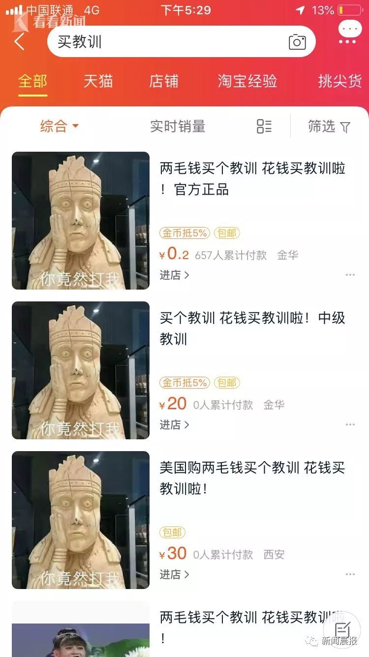 在淘宝上输入关键词“买教训”,就会出现诸多条此“商品”的购物链接。商家要价贵贱不一,便宜的两毛钱,贵的三十块钱。但是销售形式都是一样的,那就是付钱给商家,然后……就没有然后了。这已是“买教训”的全部。