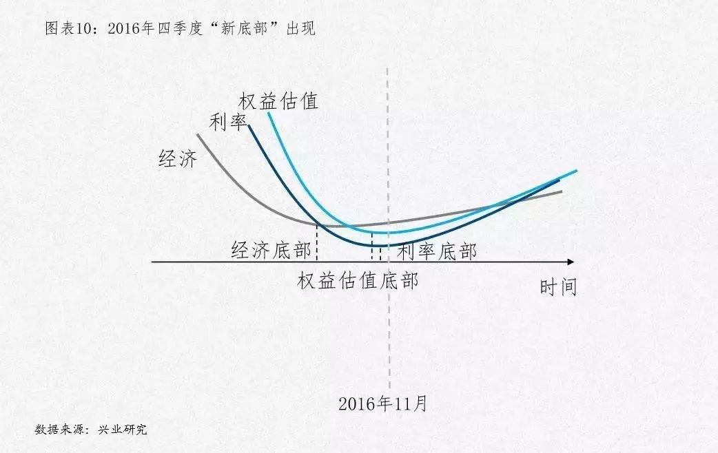 2016年底我们提出来一个新的看法“新底部”。中国经济出现新底部、利率出现新底部、股票市场也出现新底部。真正的变化、真正的复苏来自于两方面的变化:全球经济的变化和中国名义GDP收入的变化。这两个表象的背后是中国从抗周期模式到新周期模式下的转折。