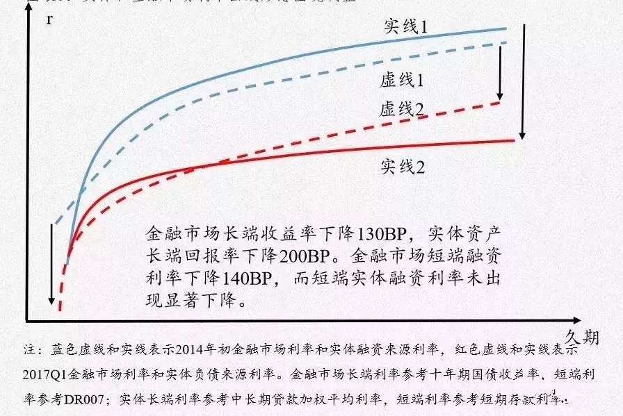 而往后看,2013年之后出现了大量的降息和降准,这种降息降准更多反映在2013年后金融市场端的宽松。金融市场和实体经济的利率相比,在短端金融市场利率下降140多BP,相当于2014年以来降息6次。2016年底大家讲过一个笑话,回报率降10个BP我们可能就失业了,从现在看,当时可能是一个终点。