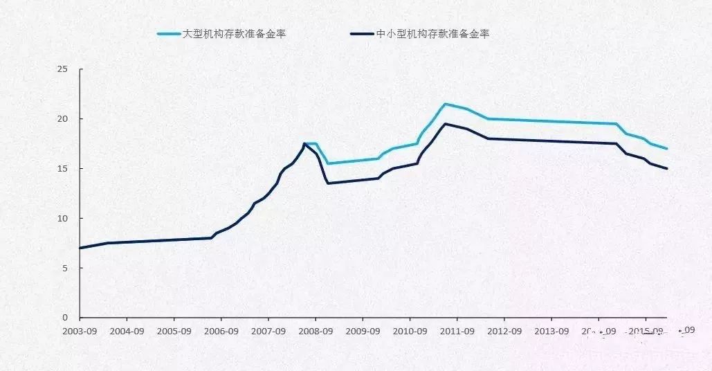 存款准备金,从图中可以看到2008、09年来是存款准备金全面进入抗危机模式的起点,到今天为止没有恢复。我们一直讲存款准备金不应该简单以0.5个百分点的速率下降,相反应该以1个百分点的速率进一步持续的下降,它本身不意味着放松,它本身意味着我们回归到整个调控的原点,以及应对新的经济周期正在出现的状态。
